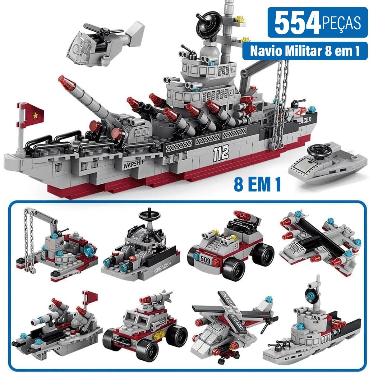 9 modelos no total: 554 peças de conjuntos de construção de hastes para meninos de 6 a 12 anos podem ser construídas em um total de 8 modelos. Seu filho pode escolher construir 8 veículos pequenos ou helicópteros diferentes, ou 1 modelo grande de navio de guerra. Observação: modelos pequenos e modelos grandes não podem existir ao mesmo tempo.