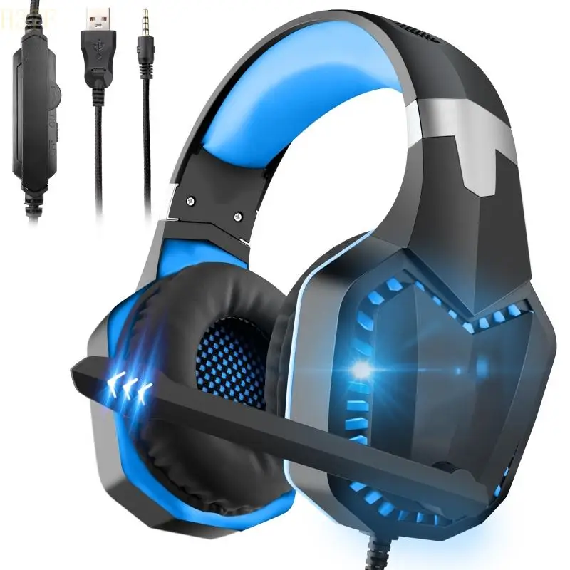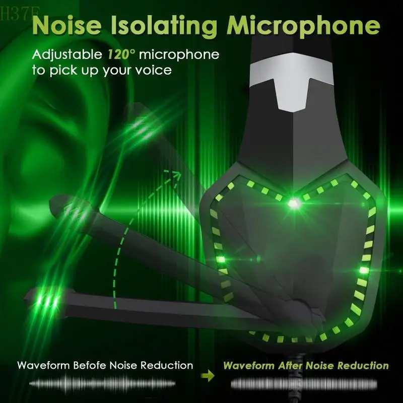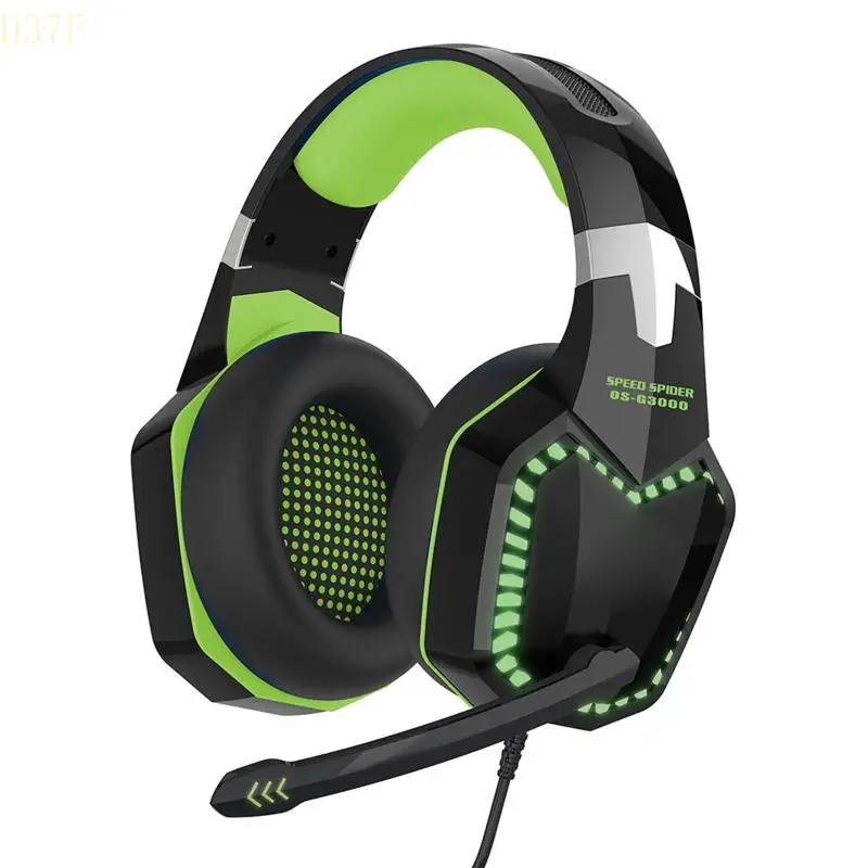 Luzes LED deslumbrantes projetadas nos fones de ouvido para destacar o jogo