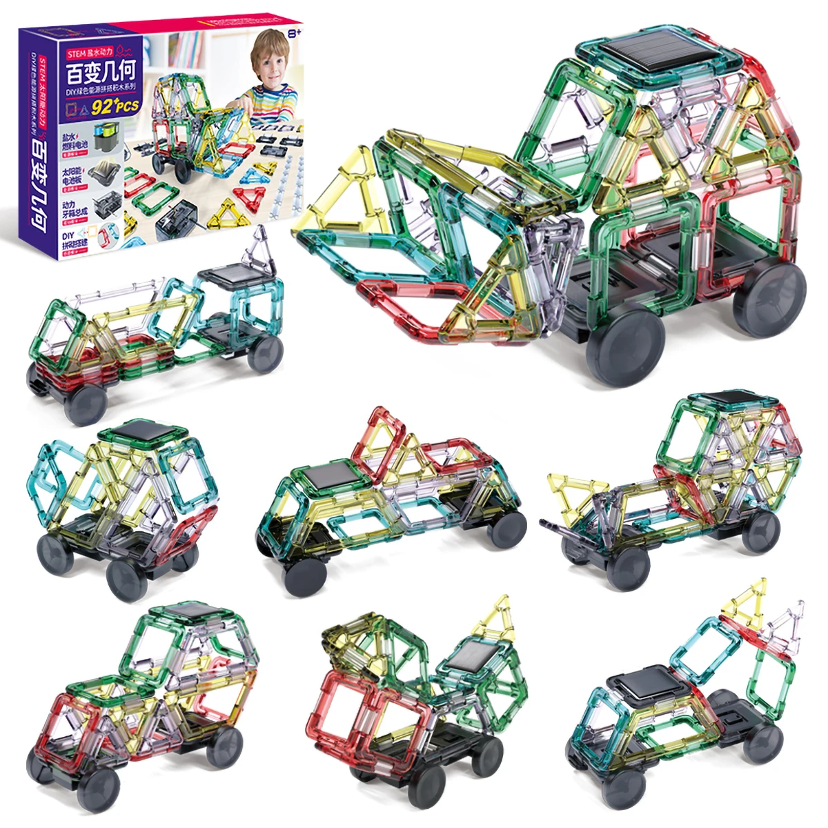 Jogos educacionais STEM: As crianças podem construir modelos livremente e usar racionalmente módulos de energia, módulos de potência, módulos de armazenamento de energia para gerar energia para acionar os modelos. As crianças aprendem sobre energia verde enquanto se divertem, incentivando a resolução de problemas, o pensamento criativo e a brincadeira imaginativa enquanto constroem estruturas, veículos e outras formas interessantes.