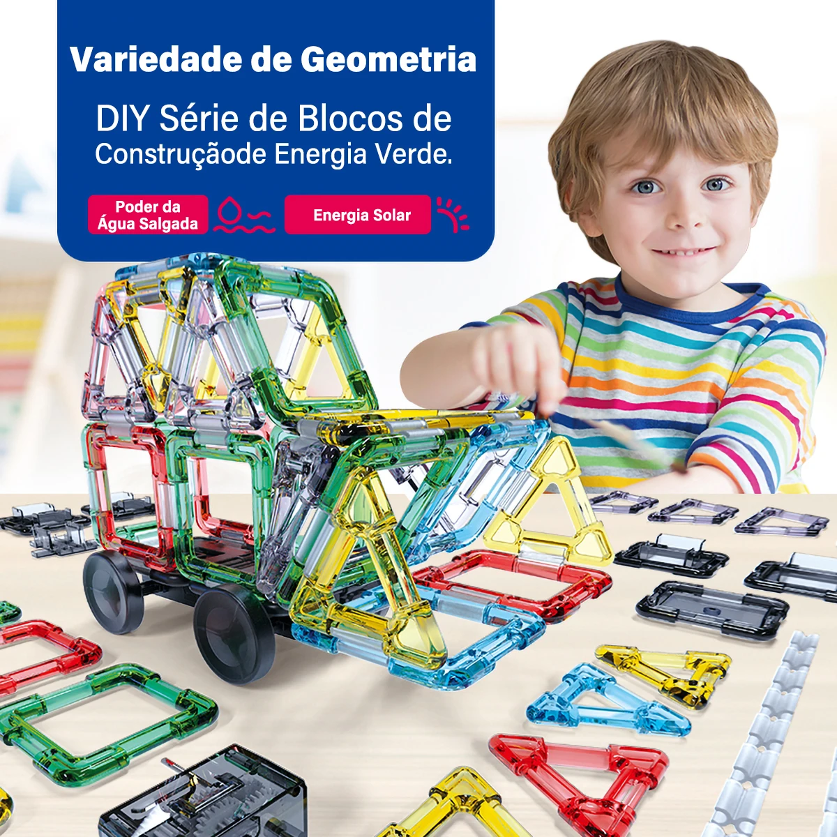 CONJUNTO DE BLOQUEIOS DE ENERGIA VERDE DIY: libere a criatividade de seu filho com esse versátil conjunto de blocos! O conjunto contém 92 peças de blocos de partículas coloridas com várias formas geométricas, como quadrados, triângulos e retângulos. Trata-se de um brinquedo de construção seguro, atóxico.Requisitos: 2 de pilhas 1.5V AAA (não incluídos).